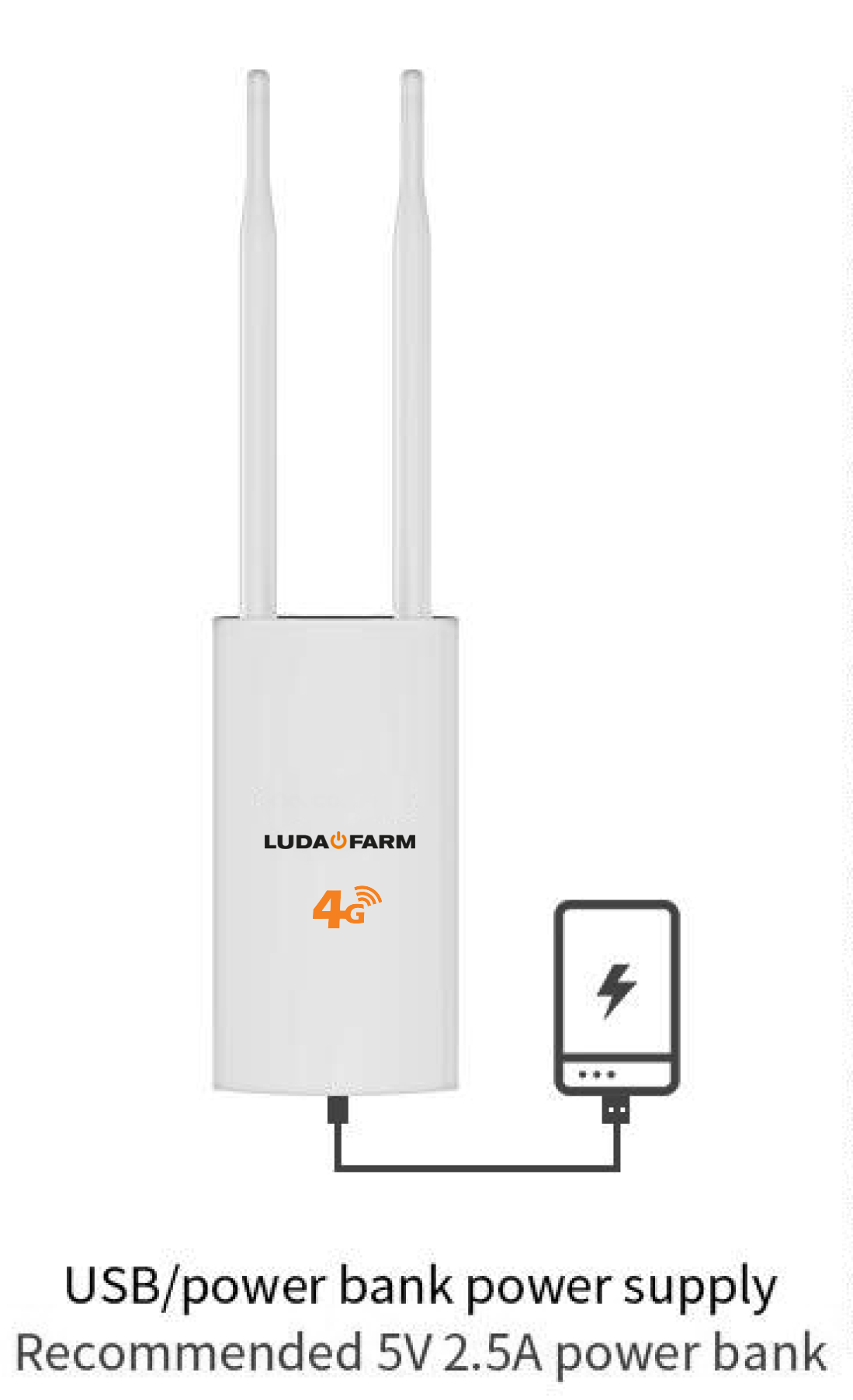Sie können den Flex 4G-Router sogar mobil machen, indem Sie eine normale Powerbank anschließen, die 5V 2.5A liefert.
