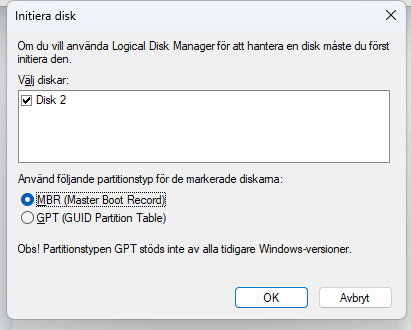 Make sure the disk is only "initialized" with MBR (Master Boot Record) and not formated in any standard.
